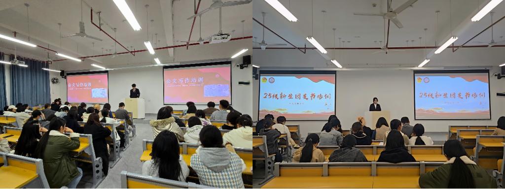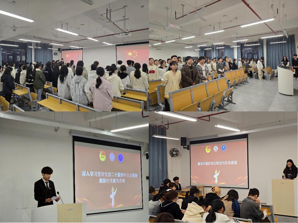会议在庄严的国歌声中拉开序幕。本次培训围绕“理论学习、业务提升、实践交流”三大模块展开。在理论学习环节,参训人员认真聆听《深入学习贯彻党的二十届四中全会精神,做新时代有为青年》专题讲座,并围绕“团学干部的责任担当与作风建设”展开深入研讨,进一步增强了学生骨干的思想政治素养和使命意识。