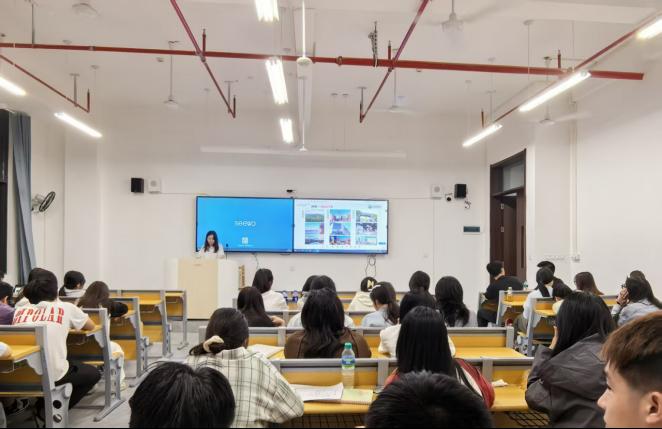 宣讲会上,安徽迪科数金科技有限公司招聘负责人从三大核心板块展开分享。首先从集团简介切入,系统介绍了企业在金融科技领域的业务布局、行业地位及发展历程,让学生直观了解企业的核心竞争力与发展潜力;随后聚焦岗位薪资福利,针对面向毕业生开放的岗位类型、任职要求、薪酬结构及特色福利体系进行逐一说明,为学生提供清晰的职业发展参考;最后通过视频、图文等形式展示企业员工文化风采,从团队建设活动、员工成长路径到企业文化理念,全方位展现企业人文关怀与职场氛围,帮助学生深入感受企业活力。