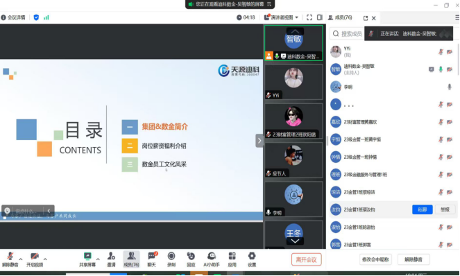 10月15日,学院联合安徽迪科数金科技有限公司,通过腾讯会议平台面向2026届全体毕业生开展线上招聘宣讲会,学院23级全体学生和班主任、辅导员参加了宣讲会。